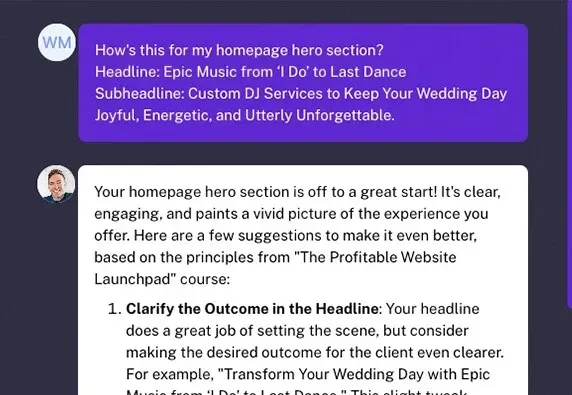 Stuck on a headline, wondering which lead magnet will work best, or need a second pair of eyes on your new homepage? Bring it all to our weekly live Q&A. I’ll be there to give you personalized feedback and keep you moving toward the finish line.